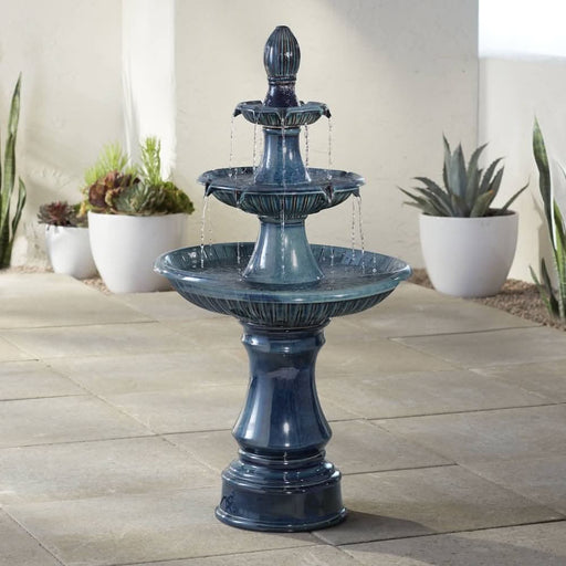 The Regal is a 3-Tier water fountain that features a glossy, deep slate blue ceramic finish. This beautiful piece has handcrafted detailing through...