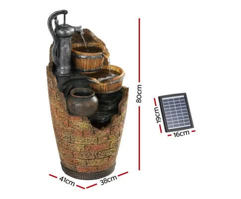 The Solar Bricks & Jugs fountain features a grey brick design with 4 jugs. The fountain stands 73cm with a minimalistic design and exudes a rus...