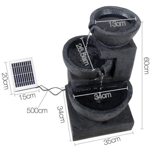 The Solar Powered 3-Tier Bowls Water Fountain boasts a simple and classical design coupled with the addition of a battery backup powered solar pump...